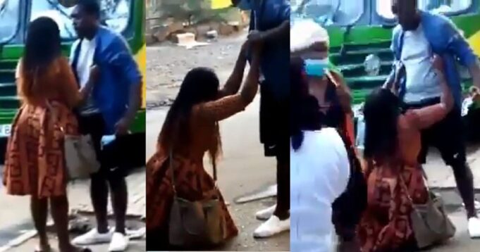 The video trending online shows the moment the lady went on her knees immediately she got the information that her man no longer wanted her.