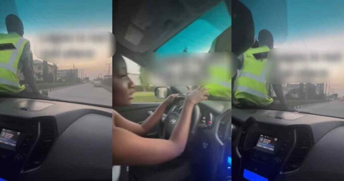 A Nigerian lady was astonished as a man took an unconventional approach to give her road directions to her destination by sitting on her car’s bonnet.