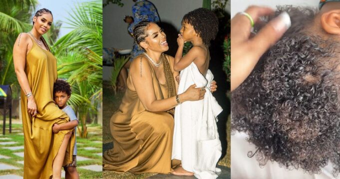 The talent manager had taken to the popular micro-blogging platform, Twitter to share a video of her playing with her son’s hair and massaging his scalp with her fingers as she gushed over how healthy his hair looks.