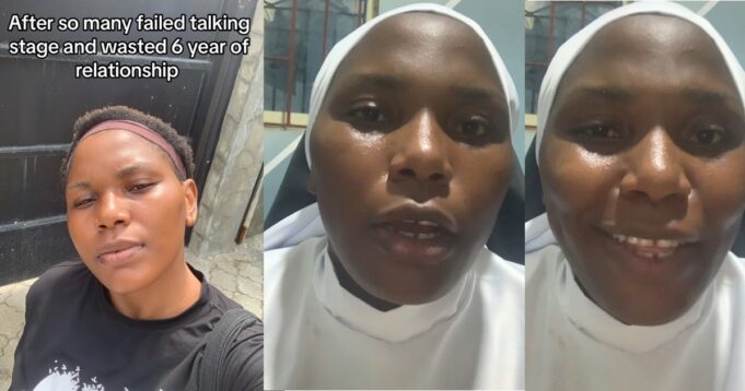 In a video she captioned “POV: after so many failed talking stage and wasted 6 years of relationship”, the lady reveals to her audience while donning the customary habit every nun wears, that she had joined the canonical movement.