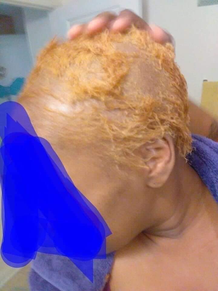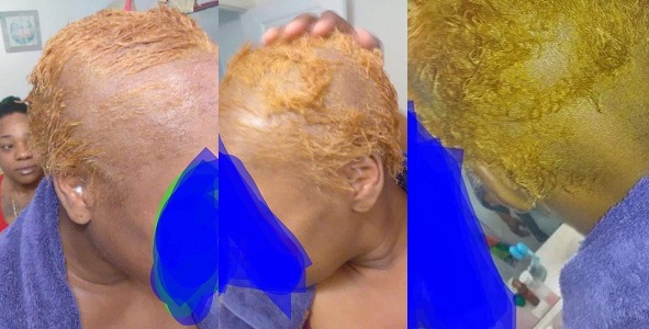 A Nigeria lady is currently trending on social media after she lost all her hair after her hairstylist allegedly applied a fake hair dye on her.