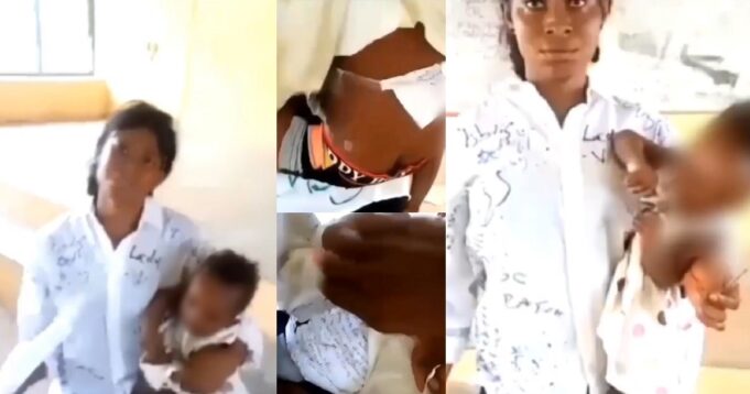 A video serving rounds online has capture the moment an unidentified young lady was nabbed while using her baby for examination malpractice.