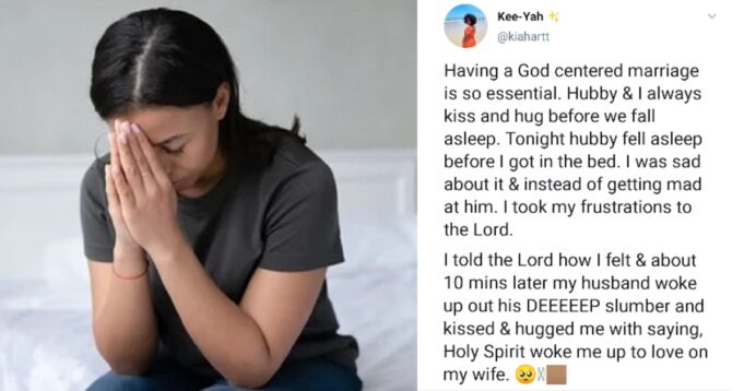A happily married woman has shared how the “Holy spirit” helped her to wake her husband after he went to bed without kissing her.