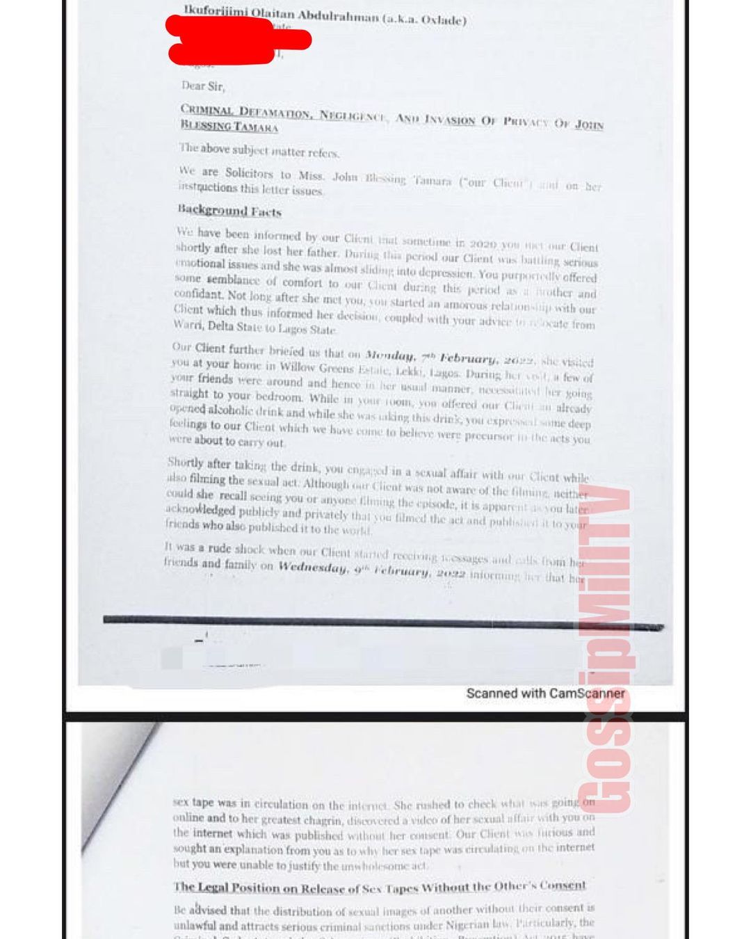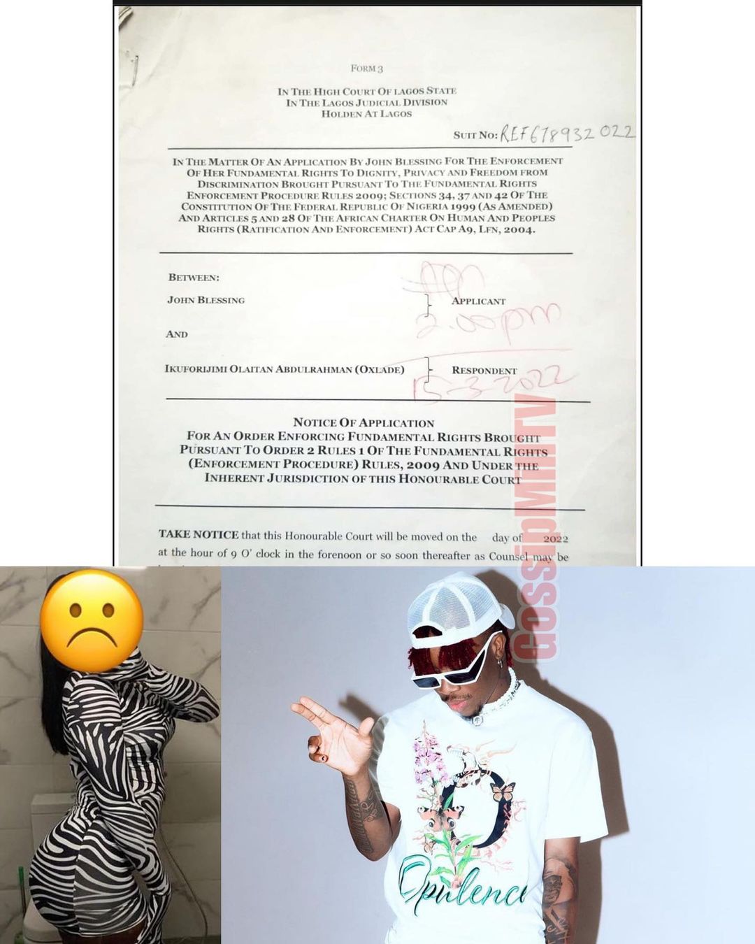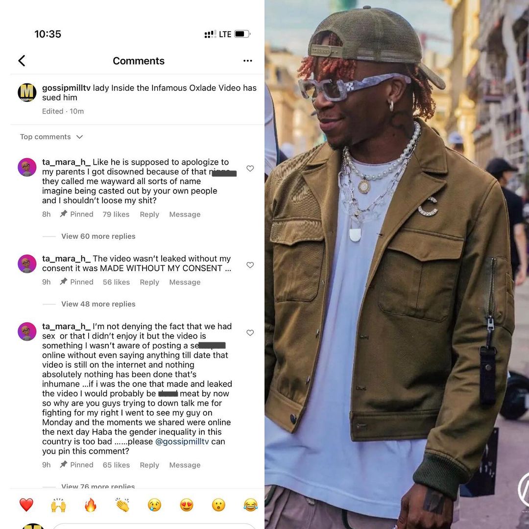 A young lady who claims to be the lady in the leaked sex tape of popular Nigerian singer, Oxlade, has filed a defamation lawsuit against him.