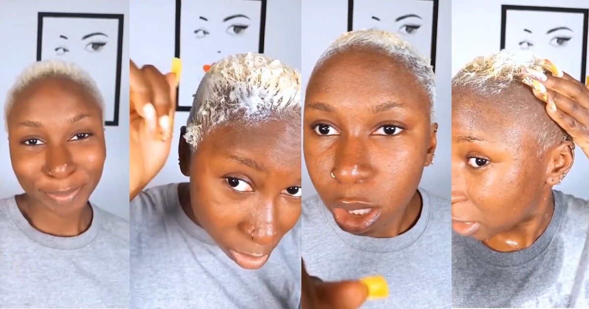 In the video she made, she reveals that prior to making the video, she’d bleached her hair and because she wanted to style it in a certain way, she decided that she was going to relax the hair.