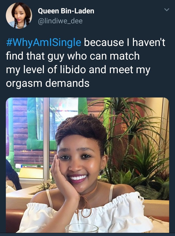 #WhyAmISingle because I haven’t find that guy who can match my level of libido and meet my orgasm demands