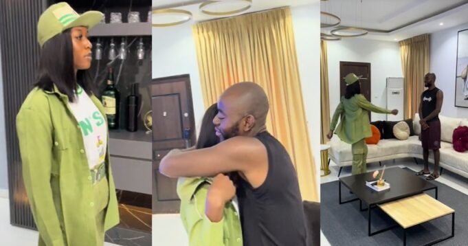 The video circulating online shows the lady in her NYSC 7/7 outfit, marching from the sitting room entrance toward her brother’s seated position. She stated that it was her last day as a youth corper.