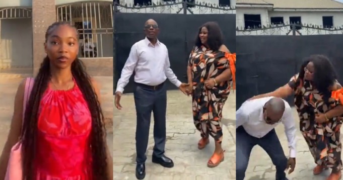 In the video shared online, the lady @justmeee_011 mentioned that her mum married a dramatic man, highlighting her parents’ funny moment. The couple appeared to be enjoying a playful moment while she recorded them.