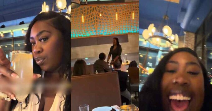 A lady screamed in excitement after witnessing a surprise proposal while filming herself at a restaurant.