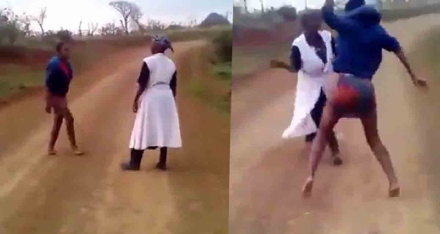 A trending video on social media shows a lady flogging her mother after her pastor told her that her mother is a witch.