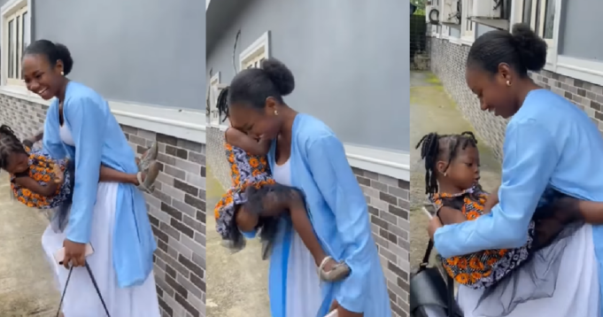 The video she shared showed how the lady, @erebi_debywise had carried a little girl after service, and when she tried to let her down, the girl refused.