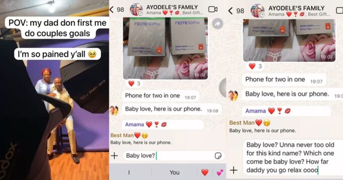 In the video, her dad announced that he had just bought a two-in-one phone, not just for himself but for his wife, whom he sweetly called “baby love.”