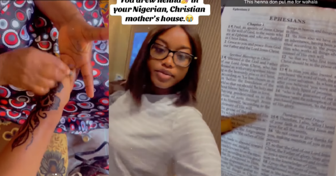 The lady @sonia_fefa revealed in her caption “You drew henna š in you Nigerian, Christian mother’s house.š,” that her mother was a strict Christian woman who disapproved of such actions.