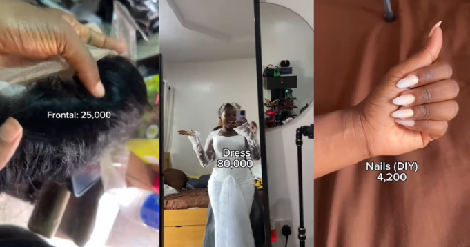 Lady shares a video breaking down how much it cost her to attend a wedding as a guest in Lagos state, from the price of the hair to her clothes.