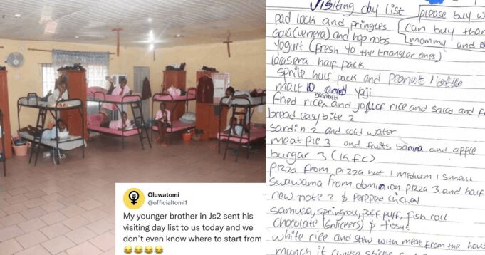 According to @officialtomi1, her brother who is currently in Junior Secondary School 2 sent the list ahead of visiting day in his school.