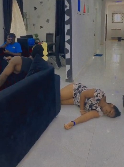 Quite surprisingly, the young man who was watching TV at the time of her prank, heard her fall and looked back to see her on the ground but took no further action and instead, continued with what he was doing.
