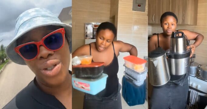 A young lady has stirred reactions online after sharing a video of herself retrieving the items she previously bought for her partner.