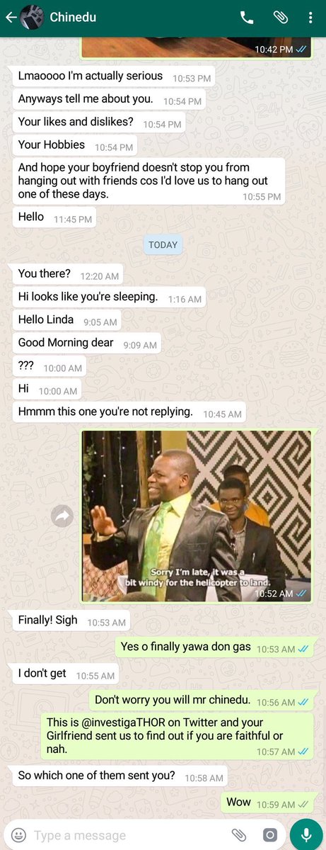 Screenshots of the Whatsapp chats from the investigation revealed how the lady’s boyfriend was tested and he failed woefully.