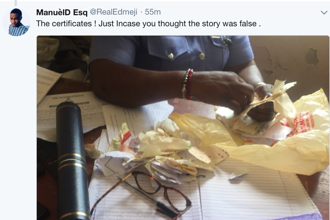 According to him, his friend’s girlfriend tore his council of legal education certificate and his call to bar certificate. She also ripped the television off the wall and stomped on it.