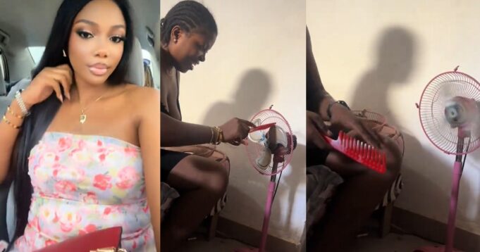 Her friend @tracey_casper captured her struggling to turn on the standing fan and continuously turning the fan’s blades with a hair comb in the video.