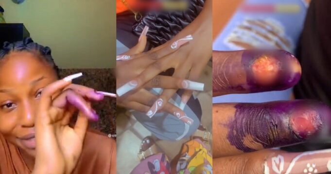 A Nigerian lady took to social media to explain how she sustained a quite painful injury hours after visiting a nail technician and getting her lovely nails done.