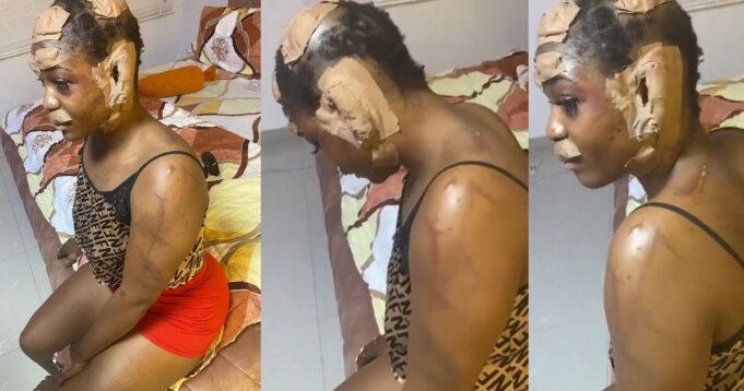 A young lady was brutally injured by some suspected kidnappers who attacked her cab in Lekki, Lagos state on Sunday, June 13th.