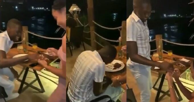 A video serving rounds online has captured the moment a beautiful lady proposed to her boyfriend in a fancy restaurant.