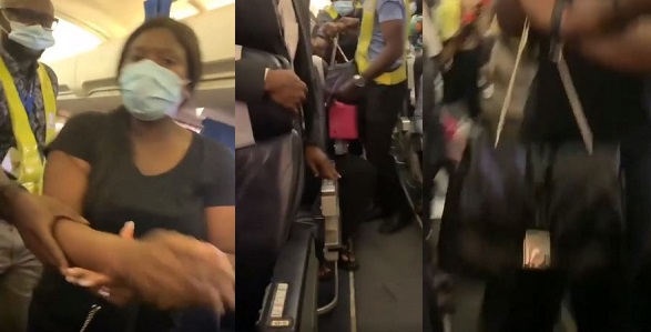 The lady’s insistence on keeping the bag with her, left the cabin crew with no other option than to usher her out of the flight.