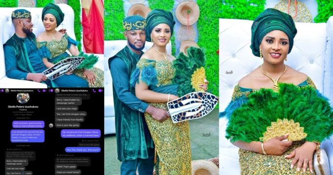 An excited Nigerian man identified on Facebook as Okello Peters Izuchukwu has shared how he met and married his wife, Udo Dirim via the platform.