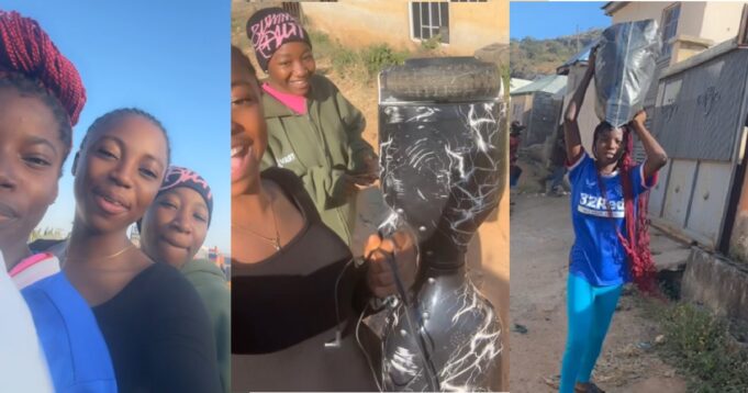 A young lady has stirred the internet after a video showed her retrieving things she got her ex-boyfriend before they broke up.