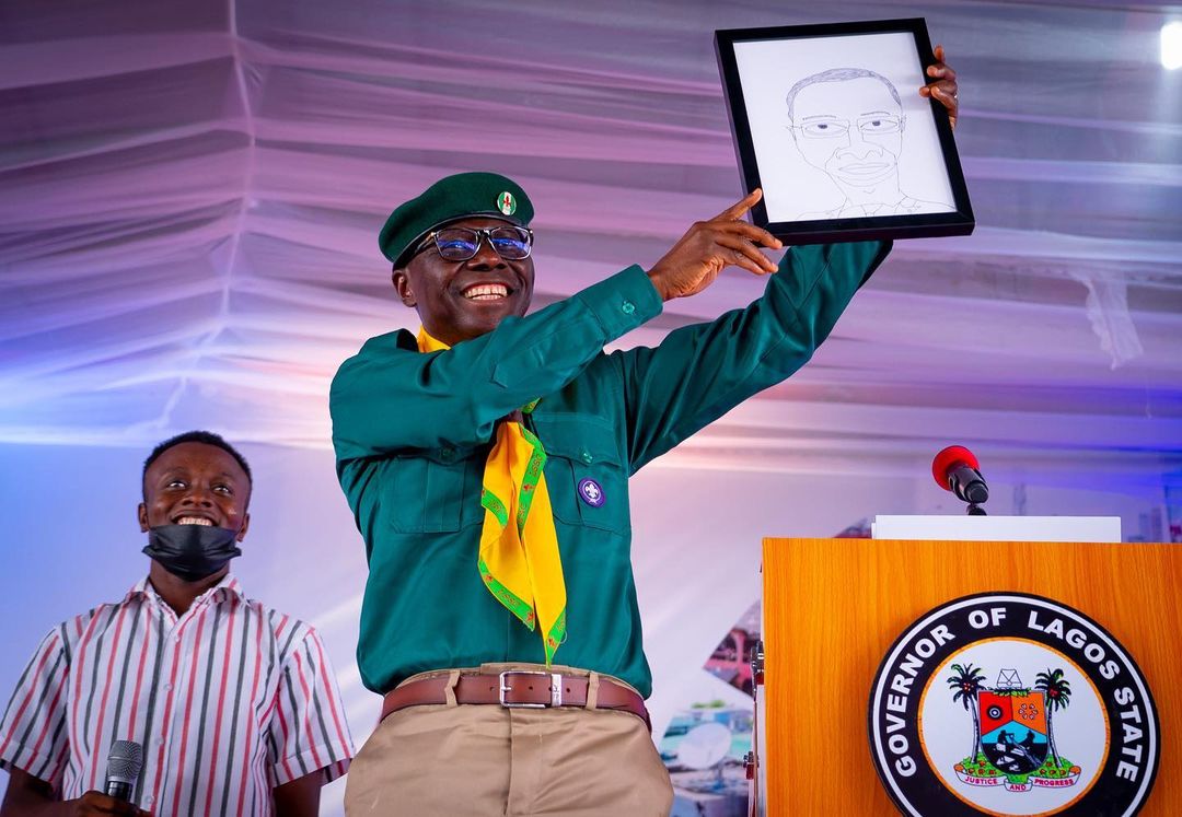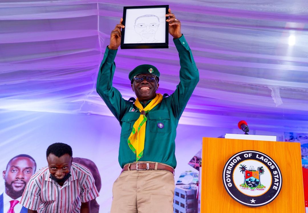 Upon seeing his drawing, the Lagos State governor reacting writing,