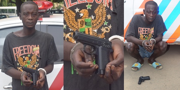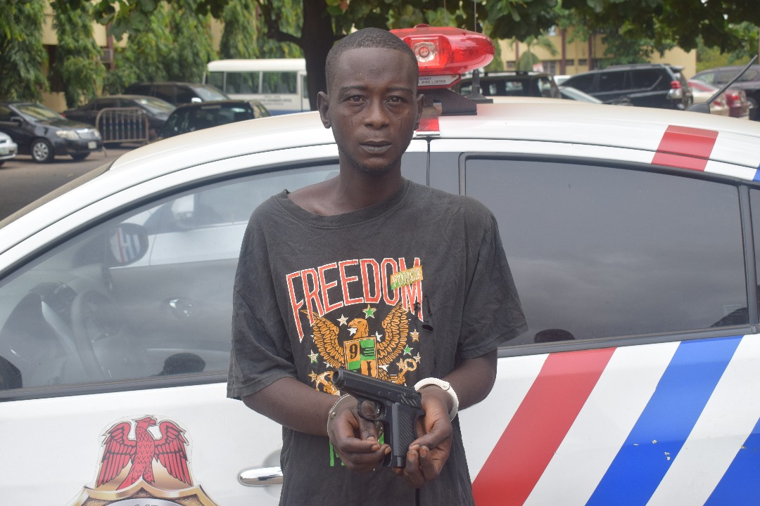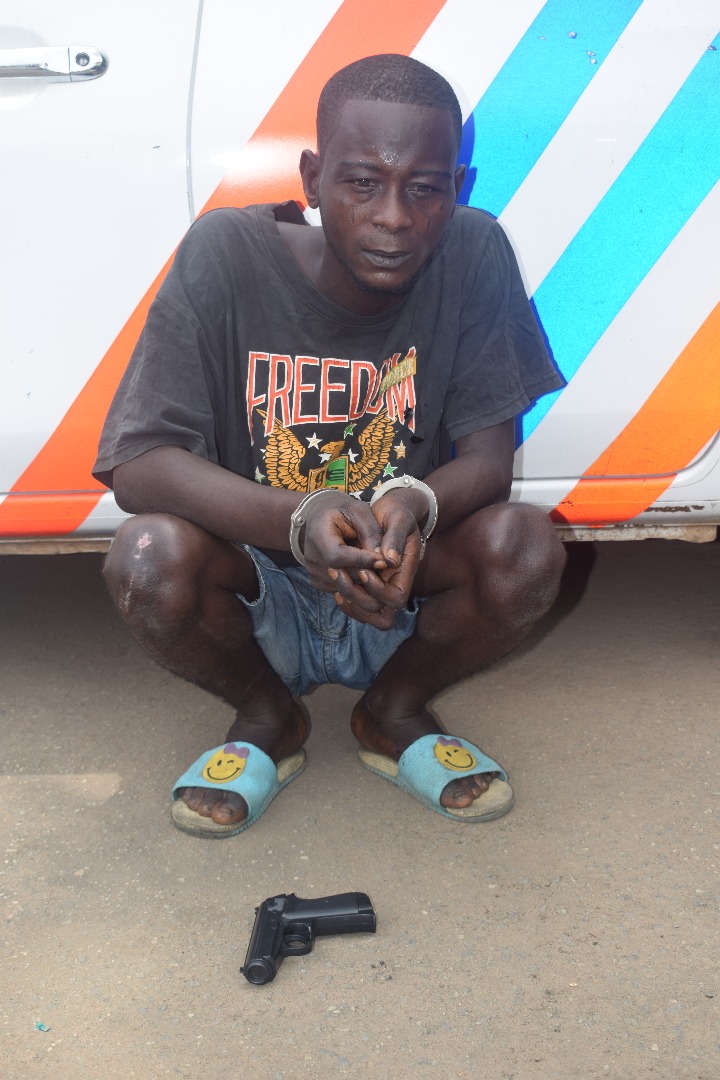 The suspect had attempted to run away immediately the toy gun fell off his body when he was promptly apprehended and taken to the RRS Headquarters.