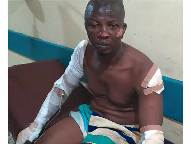 “I jumped into a gutter full of dirty water immediately I forced my way out of the bus,” he said, slowly adjusting his sitting position on the bed. “I had hoped to use the water to quench the fire on my body but unknown to me the water had already mixed with the petrol that had spilled from the tanker. That compounded my problem. While I was struggling to quench the fire on my body, I did not know that my head was burning. I managed to run across the road and into an uncompleted building where people around helped me put out the fire. That was my saving grace, otherwise only God knows what would have happened to me,” he stated.
