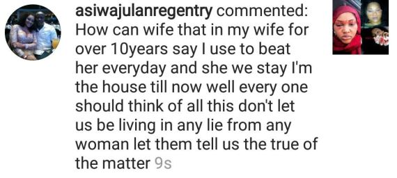 Now, Lanre is saying this never happened. In his words: “How can wife that in my wife for over 10 years say I use to beat her everyday and she we stay i’m the house till now well every one should think of all this don’t let us be living in any lie from any woman let them tell us the true of the matter”.