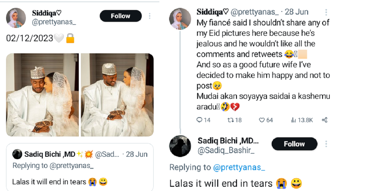 In a heartwarming turn of events, a Nigerian woman named Siddiqa has shared her wedding photos online, proving wrong the negative prediction made by a man named Sadiq Bichi six months ago.