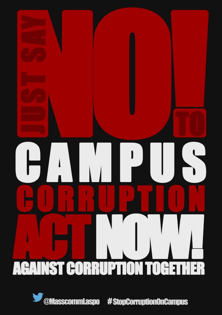 The Ikorodu campus of Lagos State Polytechnic, LASPOTECH was brought to a standstill last Wednesday as Film Students of the department of Mass Communication held a rally to campaign against campus corruption.