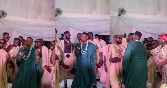 In the celebratory moment, the groom graced the wedding guests with his extraordinary singing performance, flaunting his agbada to the rhythm.