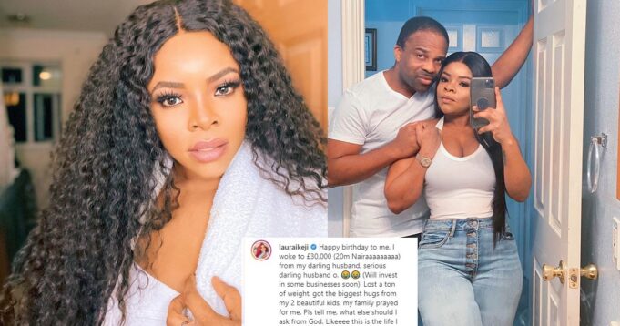 “Happy birthday to me. I woke to £30,000 (20m Nairaaaaaaaaa) from my darling husband, serious darling husband o. 😂😂 (Will invest in some businesses soon). Lost a ton of weight, got the biggest hugs from my 2 beautiful kids, my family prayed for me. Pls tell me, what else should I ask from God. Likeeee this is the life I dreamed of. God bless u all more than he has to me. Love u guys”.