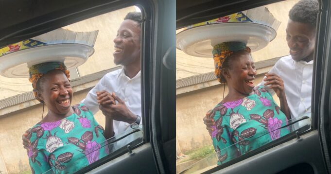 A young Nigerian lawyer has taken to social media to celebrate his hardworking mother after running into her hawking on the street.