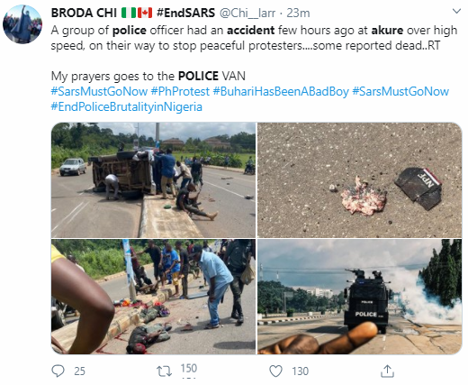 Police just had an accident while chasing a guy in Akure. 2 Body don Dey ground already ?♂️ #SARSMUSTENDNOW #SARSMUSTEND pic.twitter.com/vX5laMtYJh