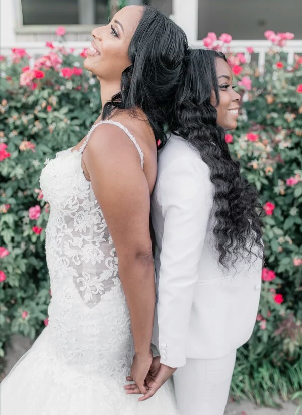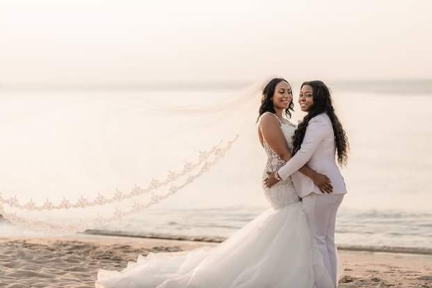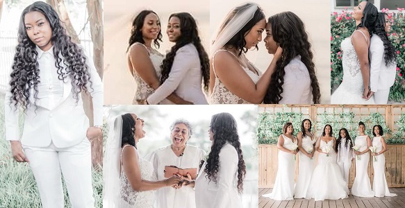 Lesbian couple Chantel Nicole Beverly, 30, a 5th Grade Teacher and Shavonia Peterson, 33, Exceptional Education Teacher walked down the aisle on April 7, at The Yacht Club, Marina Shores Virginia Beach, VA.
