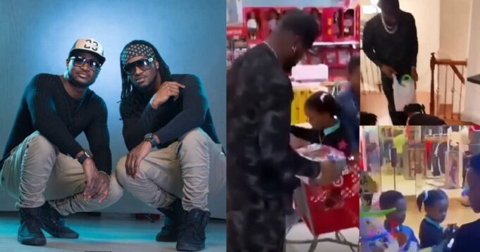 Nigerian singer, Peter Okoye has thrilled the hearts of many after a video of him taking his twin brother, Paul’s kids shopping in the US surfaced online.