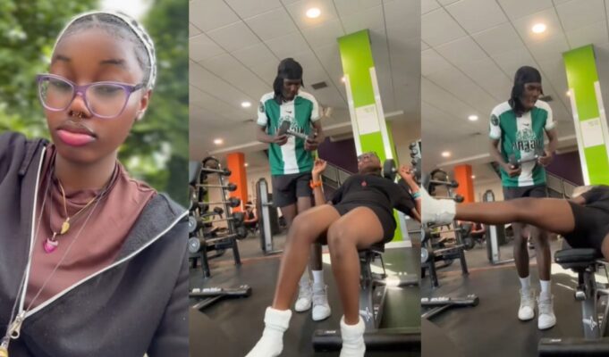 “The shii just pulled me down just like that” – Lady f@lls after trying to carry a 10kg dumbbell...