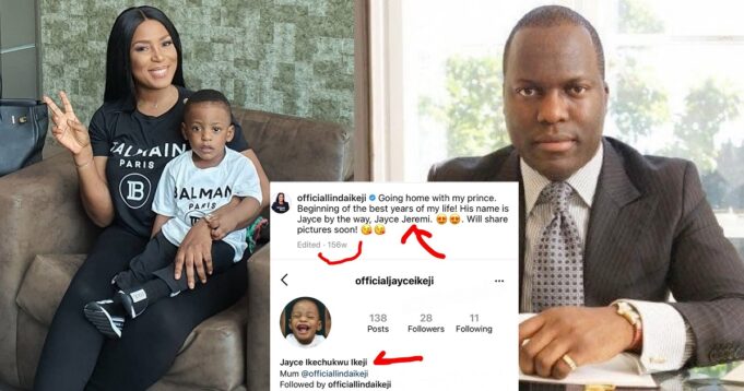 Popular celebrity blogger, Linda Ikeji has changed her son’s surname from her babby daddy’s name, Jeremi to her father’s name, Ikeji.