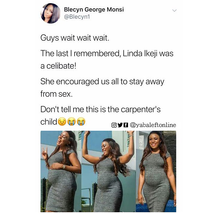 Hopefully Linda Ikeji did not get pregnant through sex, cos she was preaching celibacy na ???