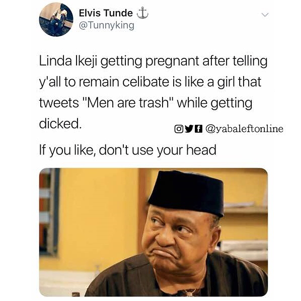 Linda Ikeji getting pregnant after telling y’all to remain celibate is like a girl that tweets “Men are trash” while getting dicked.