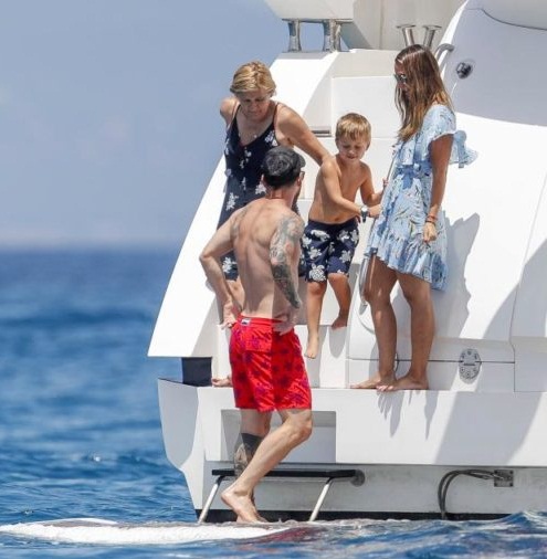 Barcelona star footballer, Lionel Messi who had a disappointing outing at the just concluded 2018 World Cup has been spotted sunbathing on a luxury yacht with wife Antonella Roccuzzo and friends in Ibiza.