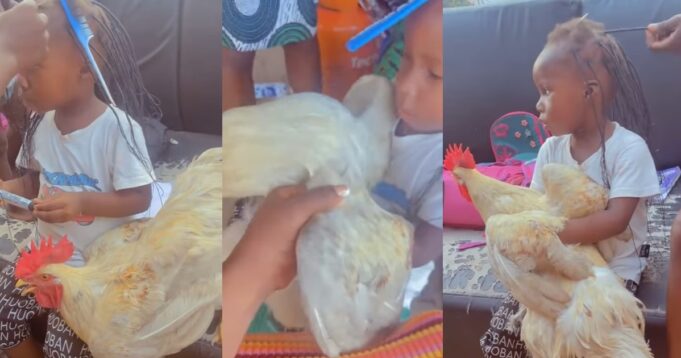 The girl’s mother @successfulljury posted a video of her daughter carrying and embracing the cock as if it were a pet on the TikTok trend “I gave motherhood a chance”.