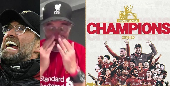 English club, Liverpool’s coach, Jurgen Klopp couldn’t hold back tears following Manchester City’s defeat to Chelsea last night, making his club the champions of the Premier League this season.