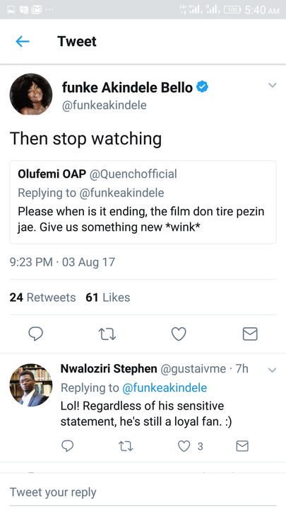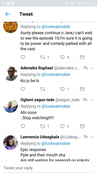 The “Scene One Boss” was not in any frenzy mood after the fan asked her when the series will end, as she is tired of watching the series.